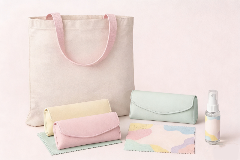 Brand Consistency: The design had to be perfectly consistent across fabric eyeglass cases, microfiber cleaning cloths, canvas tote bags, and eyeglass cleaning solutions.