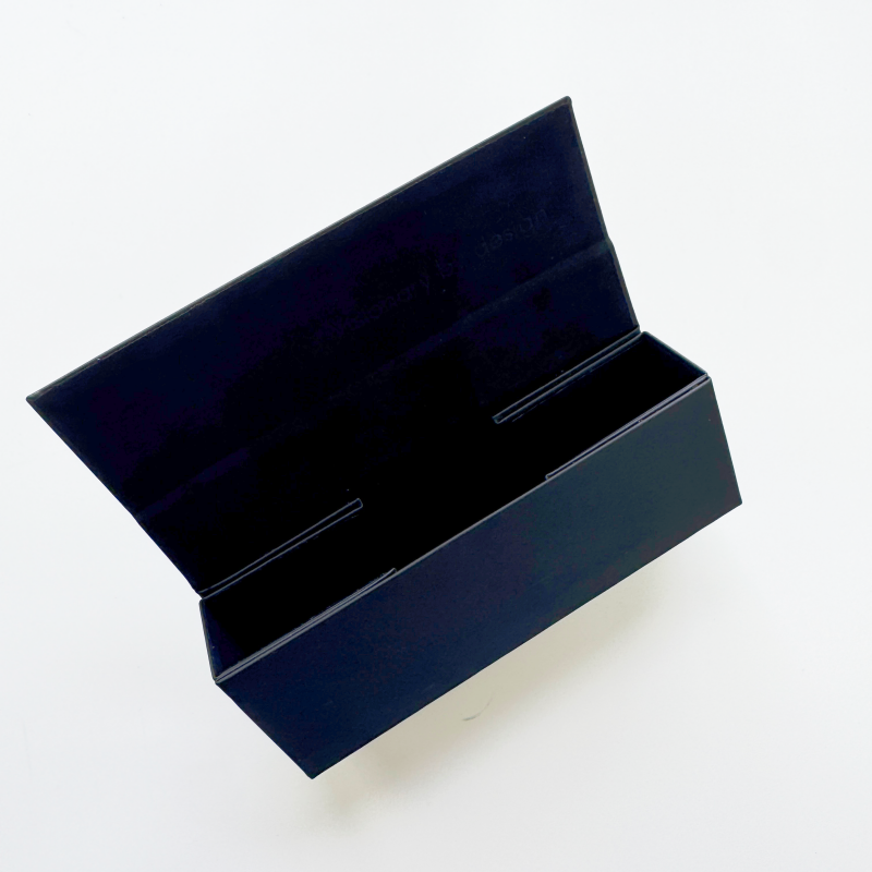 A: Of course. Xinghong Eyewear Packaging offers a custom-designed W24 reinforced folding eyeglass case that can be unfolded 180° and laid completely flat. Therefore, it's very easy to store in a lightweight bag, laptop case, car glove box, or under the seat. When you need to protect your glasses, simply fold it back to its original shape.