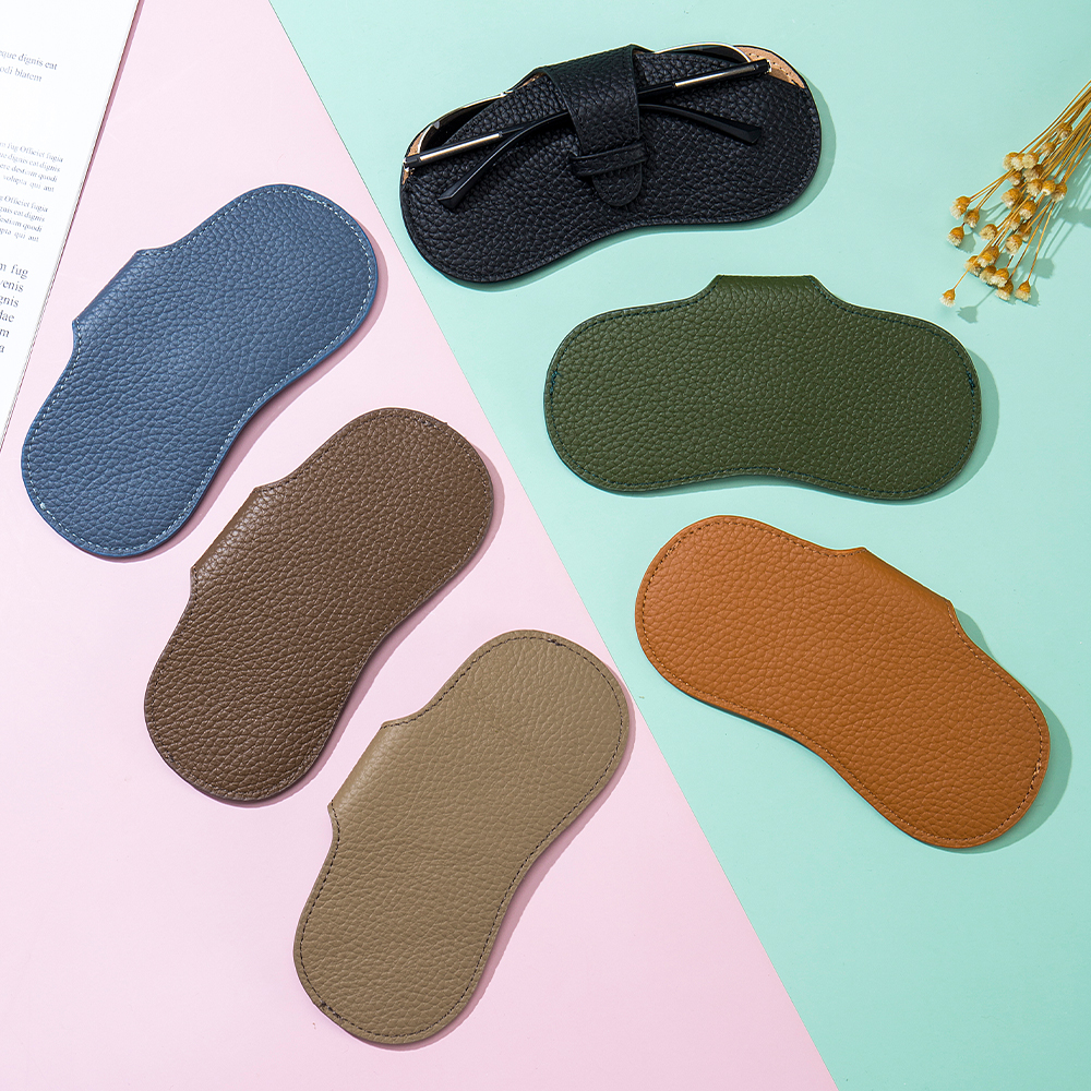 The material of the glasses bag is head-layer cowhide, or you can choose to make it with ordinary eco-friendly PU/simulated leather/microfiber leather.